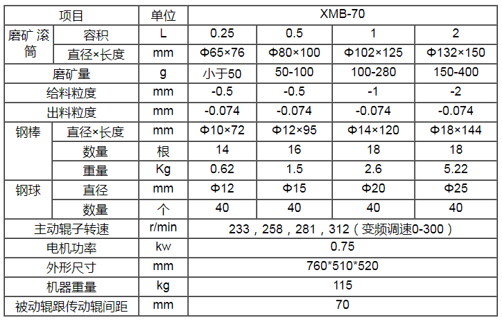 XMB70型三輥四筒棒磨機,是一種實驗室用小型、輕便、多用途的新型磨礦設備,可以單筒或多筒同時磨礦,可以干、濕兩用,亦可用鋼球代替鋼棒作球磨機使用,先進的變頻技術保證了調(diào)速范圍寬、變速平穩(wěn)??晒┮苯?、地質(zhì)、化工、建材、煤炭及大專院校、科研單位、礦山選礦廠等進行可選性研究時磨細礦石之用。
